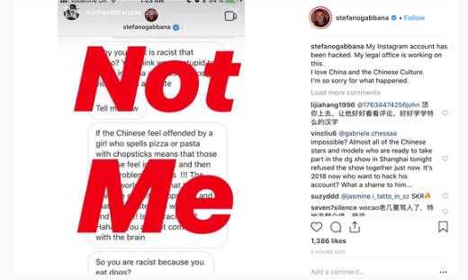 面對無(wú)法收場(chǎng)的結果,D&G被迫取消了幾個(gè)小時(shí)就開(kāi)幕的上海大秀,并開(kāi)始了危機公關(guān)。DG 和班納隨后雙雙表示,兩個(gè) Instagram 官方賬號都被盜,上述言論并非來(lái)自班納本人,法務(wù)部門(mén)正在采取行動(dòng)。