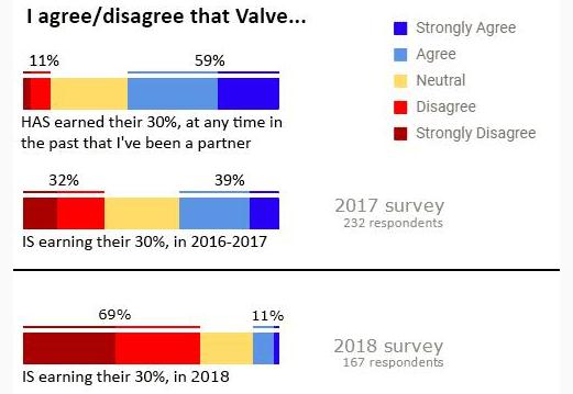 這則調查報告名為“Valve 應該知道的所有事,3.0”。因為調查員 Lars Doucet 要和 Valve 面談,所以今年的調查不如往年全面。但這則報告的確展現出了許多游戲開(kāi)發(fā)者對 Valve 以及 Steam 的運作方式不滿(mǎn)意。