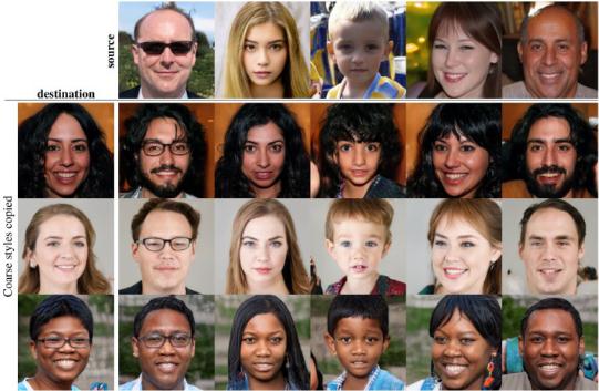 新系統的靈感源自所謂的風(fēng)格轉移,也就是對圖像(比如說(shuō)一張畫(huà))的重要風(fēng)格特征進(jìn)行提取,并應用到另一張圖像的創(chuàng )作當中,如果一切順利的話(huà),最終得到的圖像應該跟原來(lái)的擁有類(lèi)似外觀(guān)。就生成面孔而言,這里的“風(fēng)格”并不是指筆觸或顏色分布,而是圖像的構成(居中,靠左或靠右,諸如此類(lèi))以及臉部的生理特點(diǎn)(膚色、雀斑以及毛發(fā))。