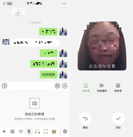 5、用戶(hù)可制作個(gè)人表情。進(jìn)入表情制作頁(yè)后,可自拍個(gè)人動(dòng)態(tài)表情包,并在該表情包上新增字幕。