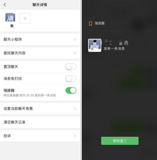 設置成功后,該好友 3 小時(shí)內發(fā)布的消息,將強制彈出并占據微信整個(gè)界面,其震動(dòng)提醒用戶(hù)好友來(lái)消息。