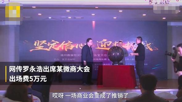 有傳聞稱(chēng),老羅參加這次微商招商大會(huì )是為了 5 萬(wàn)元的出場(chǎng)費,不過(guò)招商會(huì )主辦方稱(chēng)是謠傳,還說(shuō)“好朋友一起出去出個(gè)行這些都是很正常的”。