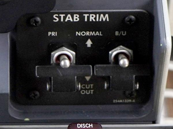 但波音從 737 NG 過(guò)渡到 737 MAX 時(shí)改變了這兩個(gè)開(kāi)關(guān)的標簽和用途。開(kāi)關(guān)的功能受到了限制。在 737 NG 中,左邊的開(kāi)關(guān)可用于關(guān)閉水平穩定器的電控制,右邊的開(kāi)關(guān)標簽叫“AUTO PILOT”,可用于關(guān)閉水平穩定器的自動(dòng)控制。但在 737 MAX 中,兩個(gè)開(kāi)關(guān)的功能重合了,不再能關(guān)閉自動(dòng)控制如 MCAS。