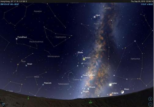 2019 年 9 月 5 日掩星時(shí)冥王星在天空中的位置