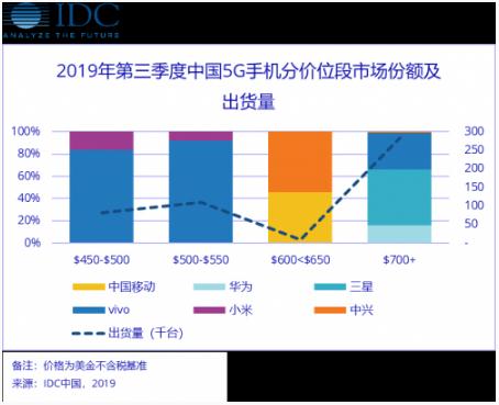 IDC 認為,首批國內 5G 市場(chǎng)主要分為“帶量旗艦”和“高端旗艦”兩部分,即集中于 450-550 美元的中高端價(jià)位,和 700 美元以上的高端價(jià)位。目前來(lái)看,vivo 可以同時(shí)覆蓋兩部分市場(chǎng),小米、中興、三星等也在國內 5G 市場(chǎng)上發(fā)力。