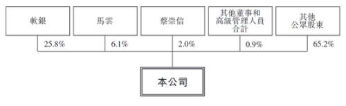 招股書(shū)顯示,阿里巴巴集團目前的股權結構為,截至最后實(shí)際可行日期,軟銀實(shí)益擁有約25.8%已發(fā)行在外股份,是最大股東。本次全球發(fā)售完成后,軟銀將保持其最大股東地位。截至最后實(shí)際可行日期,馬云和蔡崇信分別實(shí)益擁有約6.1%和約2.0%已發(fā)行在外股份。截至最后實(shí)際可行日期,董事和高級管理人員(包括馬云和蔡崇信)共計擁有約9.0%已發(fā)行在外股份。