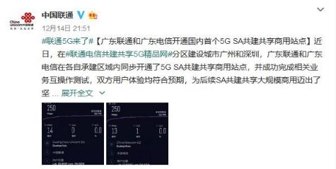 官方稱(chēng)在聯(lián)通電信共建共享 5G 精品網(wǎng)分區建設城市廣州和深圳,廣東聯(lián)通和廣東電信在各自承建區域內同步開(kāi)通了 5G SA 共建共享商用站點(diǎn),并成功完成相關(guān)業(yè)務(wù)互操作測試,雙方用戶(hù)體驗均符合預期,為后續 SA 共建共享大規模商用邁出了堅實(shí)的一步。