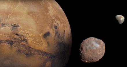 盡管他們的起源尚不清楚,但火衛一的消亡是相當確定的?;鹦堑囊φ谑够鹦l一減速,并將其不斷拉近。每個(gè)世紀,它將向火星移動(dòng)約兩米。在大約 3000 至 5000 萬(wàn)年內,火衛一會(huì )破碎成碎片,甚至可能在火星周?chē)纬梢粋€(gè)可以持續數百萬(wàn)年的殘骸環(huán)。