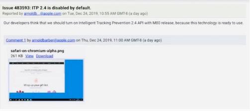 據了解,早先蘋(píng)果就推出過(guò)基于 Windows 平臺的 Safari 瀏覽器,但這一項目在幾年前停止了開(kāi)發(fā)?,F在,一名蘋(píng)果員工邀請 Chromium 開(kāi)發(fā)人員在 Chromium 80 的問(wèn)題追蹤工具中激活“智能跟蹤預防”技術(shù)的標記。