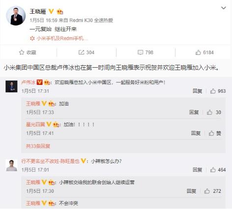 值得注意的是王曉雁還清空了此前的所有微博并將自己的微博認證修改為小米集團中國區副總裁,根據官方文件顯示他將兼任小米銷(xiāo)售二部總經(jīng)理,負責電商一部、電商二部、電商三部業(yè)務(wù)。
