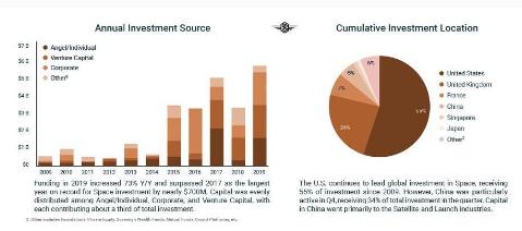 太空創(chuàng )業(yè)歷年投資來(lái)源和各個(gè)市場(chǎng)融資占比