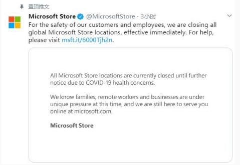 3 月 17 日,據外媒報道稱(chēng),微軟今日宣布即時(shí)關(guān)閉全球所有旗下店鋪,但會(huì )提供線(xiàn)上服務(wù)。