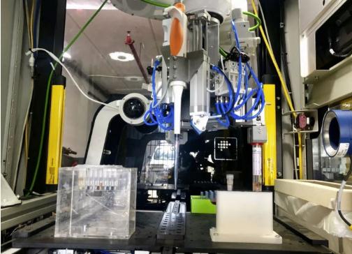 Bright Machines 公司與特拉維夫的 Ichilov 醫院實(shí)驗室、Impact 實(shí)驗室和 iCobots 合作,使用 Bright Machines 的標準構件,建造了一個(gè)機器人單元,一個(gè)雙傳送帶、一個(gè)機械臂和一個(gè)視覺(jué)系統。機器人被編程為打開(kāi)不同大小的試管,從病人試管中抽取樣品到控制管中,視覺(jué)系統在整個(gè)過(guò)程中驗證性能。