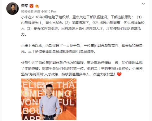 那么,外部高管空降是不是小米的只要策略呢?5 月 10 日晚,雷軍就詳細解讀了小米的干部選拔原則。