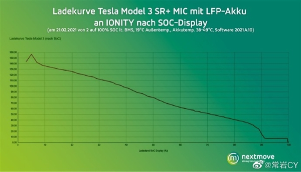 結果顯示,特斯拉最近的 2021.4.10 固件更新版本,徹底解放了磷酸鐵鋰電池的充電功率。該版本軟件去除了之前磷酸鐵鋰車(chē)型充電的“功率帽”。