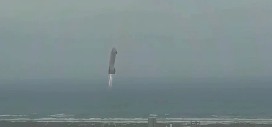 本次飛行程序和此前的四次類(lèi)似:首先星艦飛行到最高點(diǎn),隨后進(jìn)行姿態(tài)調整,使腹部沖下,借助腹部增大與空氣接觸面積,加大空氣對星艦的阻力,然后星艦徐徐向地面飄落,在距離地面一定高度時(shí),發(fā)動(dòng)機再次點(diǎn)燃,使星艦重新直立起來(lái)(俗稱(chēng)“神龍擺尾”),靠發(fā)動(dòng)機的反推進(jìn)行軟著(zhù)陸。