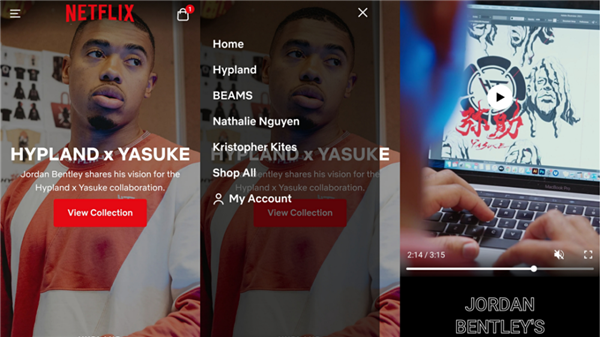 依次為Netflix.shop首頁(yè)、欄目導航、設計理念視頻