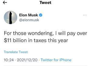 馬斯克最新在社交媒體上表示,“告訴那些好奇的人,我今年將支付超過(guò) 110 億美元的稅款”。