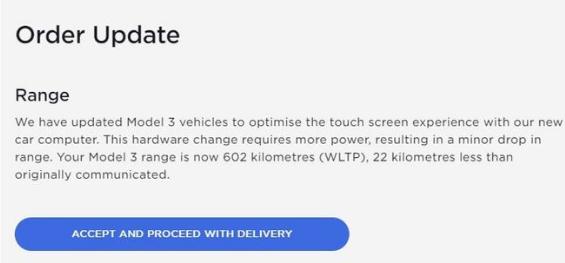 不過(guò),雖然新的處理器帶來(lái)了更加流暢快速的車(chē)機使用體驗,但根據特斯拉官方的說(shuō)法,新的車(chē)機硬件會(huì )對續航造成小幅影響。根據海外官方顯示,海外市場(chǎng) Model 3 后驅版在使用 AMD 芯片后,搭載 18 英寸輪輞車(chē)型的 WLTP 續航里程從 637 公里降至 626 公里,搭載 19 英寸輪輞車(chē)型的續航里程由 614 公里降至 602 公里。同時(shí),根據海外用戶(hù)提供的訂單更新消息來(lái)看,續航降低主要是由于全新車(chē)機硬件優(yōu)化了觸摸屏體驗,這種硬件變動(dòng)需要更多功率,所以會(huì )導致續航略有下降。不過(guò),目前官網(wǎng)并未對續航里程信息進(jìn)行調整。