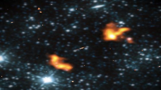 研究人員稱(chēng),“阿爾庫俄紐斯”星系是龐大而典型的射電星系。射電星系由一個(gè)宿主星系(即圍繞含有超大質(zhì)量黑洞的星系核的恒星團)以及從星系中心噴出的巨大噴流和裂片組成。星系中心的黑洞吞噬大量物質(zhì),然后將其吐出——噴射出兩股巨大的等離子體,這些等離子體以接近光速的速度移動(dòng)。旅行數百萬(wàn)光年后,等離子體束的速度變慢,擴散成羽流,這些羽流以射電電波的形式發(fā)出光。