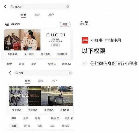 2021 年中,有媒體發(fā)現在京東 app、小紅書(shū) app 里搜索知名品牌(如 GUCCI、CELINE),在品牌企業(yè)號里可直接進(jìn)入該品牌微信小程序,無(wú)需切換 app。目前該功能已停止使用,倘若微信與外部生態(tài)的聯(lián)合發(fā)展,或許將探索出更強大的互聯(lián)網(wǎng)營(yíng)銷(xiāo)模式,賦予商家更大的發(fā)展空間。