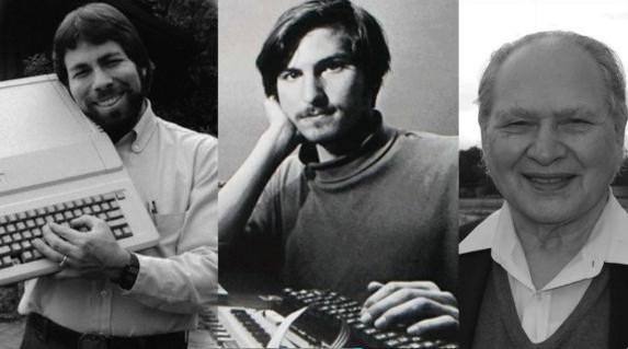 ▲ 蘋(píng)果公司的原始創(chuàng )始人從左至右:史蒂夫?沃茲尼亞克、史蒂夫?喬布斯、羅恩?韋恩