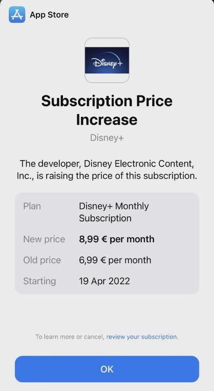 當 Disney+ 最近將其價(jià)格提高到每月 7.99 美元時(shí),一些開(kāi)發(fā)者注意到 Disney+ 應用程序發(fā)出的通知更像是關(guān)于價(jià)格上漲的提醒,而不是明確的是否加入。Disney+ 用戶(hù)收到的通知中有一個(gè)大的"確定"按鈕,讓他們知道這一變化,但沒(méi)有內置的退出按鈕,而是由應用程序提供一個(gè)鏈接來(lái)改變訂閱。
