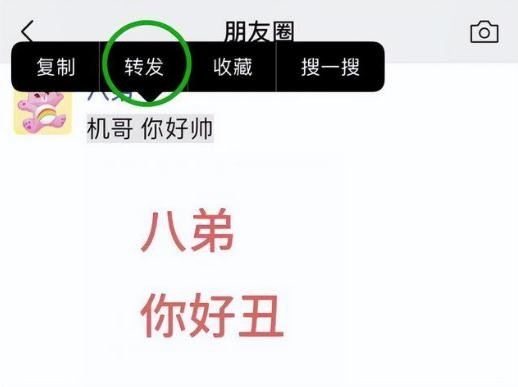 我放著(zhù)好好的朋友圈評論功能不用,我私下轉發(fā)回去給八弟,私聊吐槽?