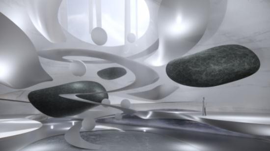 “我理解的元宇宙應該是一個(gè)文化聚集場(chǎng)所,它應該有多種的空間和元素在這里發(fā)生。我們的設想是它是一個(gè)飄動(dòng)著(zhù)的建筑,建筑的底座在水邊的小山丘,建筑漂浮在空中,并且這個(gè)建筑是可以生長(cháng)的,水是它的一種生長(cháng)的能量。”