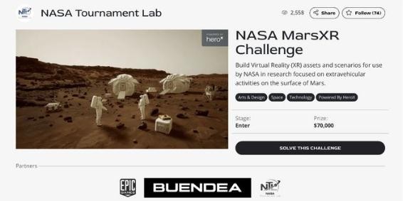 近日,美國國家航空航天局(NASA)在眾籌平臺 HeroX 發(fā)起了一個(gè) MarsXR 挑戰賽,要求參與者構建虛擬現實(shí)的要素與場(chǎng)景,以幫助 NASA 宇航員未來(lái)在火星地面開(kāi)展艙外研究。