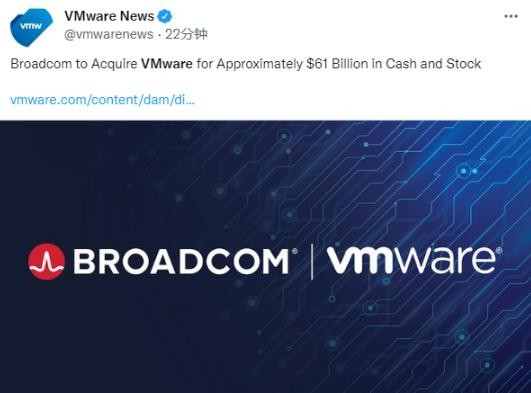 博通宣布將以 610 億美元現金或股票收購云服務(wù)提供商、虛擬機軟件巨頭 VMware。