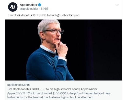 據 Apple Insider 報道,蘋(píng)果公司 CEO 蒂姆?庫克捐贈了 10 萬(wàn)美元,用于資助他在阿拉巴馬州高中就讀的樂(lè )隊購買(mǎi)新樂(lè )器。