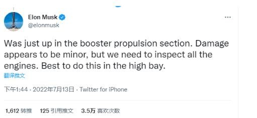 SpaceX 馬斯克透露 星際飛船助推器爆炸后的損壞不嚴重 10:08:17