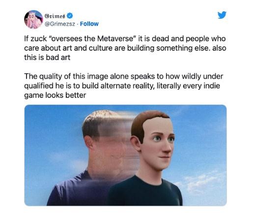 格萊姆斯抨擊扎克伯格不夠資格推出元宇宙