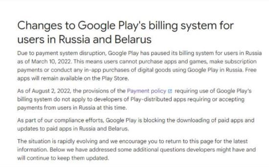 在此前,受美國對俄羅斯實(shí)行的金融制裁的影響,谷歌在今年 3 月份后停止了 Google Play 商店的結算系統的運行,隨后,通過(guò)手機號,禮品卡等途徑進(jìn)行 Play 商店充值的“漏洞”也被谷歌相繼封鎖。在 5 月,谷歌甚至更進(jìn)一步,直接禁止了谷歌商店中付費應用的下載和更新。一直以來(lái),谷歌在全球各區域都要求通過(guò) Google Play 進(jìn)行分發(fā)的應用都需要通過(guò) Google Play 商店結算系統進(jìn)行交易。這一系統的停擺意味著(zhù)通過(guò) Google Play 分發(fā)的俄羅斯應用將無(wú)法通過(guò)應用內購買(mǎi),訂閱和下載付費等任何途徑獲得收入。
