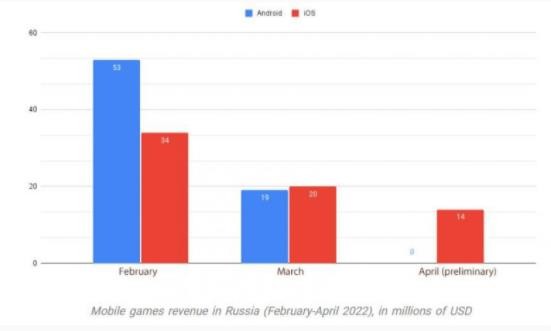 在今年 2 月以前,Google Play 商店曾是俄羅斯最重要的手機游戲分發(fā)平臺,俄羅斯 60% 的手游營(yíng)收都來(lái)自 Play 商店,但制裁令的重挫讓這一數字直接歸零。由于集成了 Qiwi 等本地支付渠道,App Store 逃過(guò)了被清零的命運,但依然受到了重創(chuàng )。