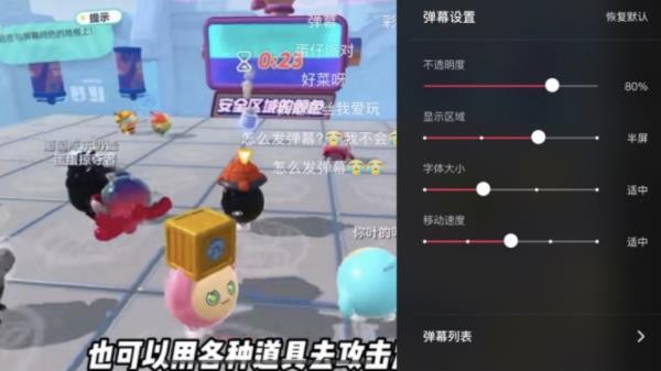 除了文字,彈幕還支持 Emoji 表情符號。同時(shí),用戶(hù)可以對彈幕進(jìn)行設置,調節彈幕的不透明度、顯示區域、字體大小、移動(dòng)速度。在彈幕設置最下方,用戶(hù)可查看彈幕列表。