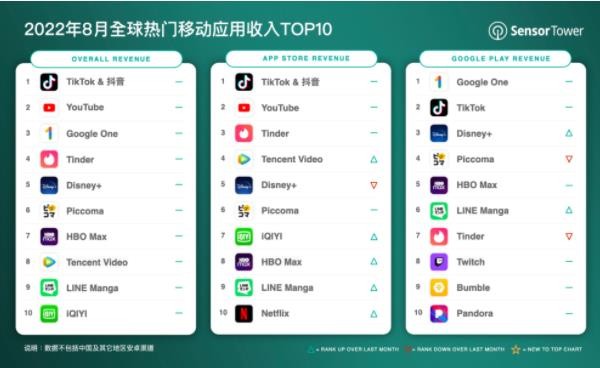 Sensor Tower 商店情報數據顯示,2022 年 8 月抖音及海外版 TikTok 在全球 App Store 和 Google Play 吸金超過(guò) 3.06 億美元,是去年同期的 1.8 倍,蟬聯(lián)全球移動(dòng)應用 (非游戲) 收入榜冠軍。其中,大約 47.2% 的收入來(lái)自中國版本抖音;美國市場(chǎng)排名第二,貢獻了 16.5% 的收入;日本市場(chǎng)排名第三,占 4.2%。