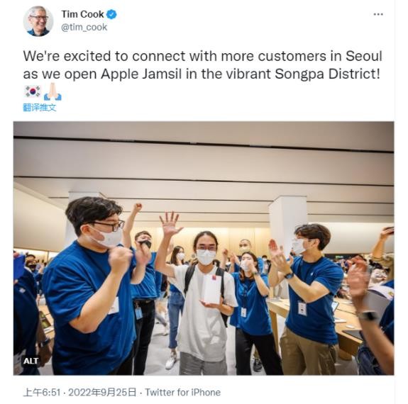 蘋(píng)果剛在韓國首爾新開(kāi)設了一家 Apple Store 官方零售店,據悉,蘋(píng)果蠶室店是這家科技巨頭在韓國開(kāi)設的第四家門(mén)店。為了慶祝開(kāi)業(yè),蘋(píng)果 CEO 庫克還特意為其獻上祝福,并附了一張該店首批顧客被員工包圍的照片。