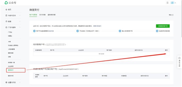 4.點(diǎn)擊提交后,此時(shí)這個(gè)AppID還屬于待同意的狀態(tài),需要到授權的公眾號或小程序后臺的微信支付頁(yè)面里的待關(guān)聯(lián)商戶(hù)號中點(diǎn)擊同意即可關(guān)聯(lián)成功。