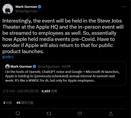 據 Mark Gurman 表示,在這一系列 AI 產(chǎn)品發(fā)布之后,蘋(píng)果將于下周在總部舉行(原定的)年度內部 AI 峰會(huì )。此次 AI 峰會(huì )就像是一次專(zhuān)門(mén)為 AI 舉行的 WWDC 大會(huì ),但僅限于蘋(píng)果內部員工參與。