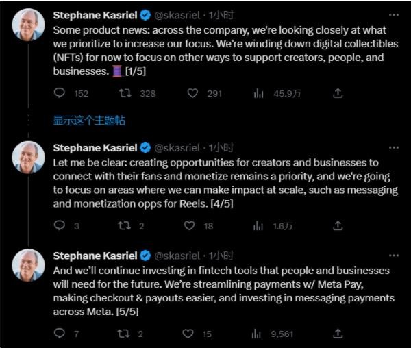 當地時(shí)間周一,這家社交媒體公司的金融科技主管 Stephane Kasriel 發(fā)推表示:“我們目前正在逐步減少數字藏品 (NFT),專(zhuān)注于其他方式來(lái)支持創(chuàng )作者、個(gè)人和企業(yè)。”
