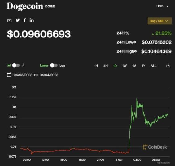 加密貨幣狗狗幣價(jià)格一度飆升超過(guò) 30%,現漲 21.25%。此前推特 CEO 埃隆·馬斯克將公司網(wǎng)站上標志性的“小藍鳥(niǎo)”換成了“柴犬”卡通形象。 ?。?a href="http://m.lsbmaoyi.com">碼上科技)