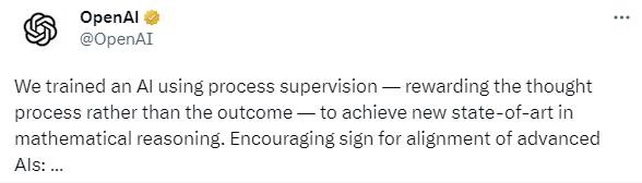 該公司提出的新策略是:訓練人工智能模型時(shí),獎勵每個(gè)正確的推理步驟,而不僅僅是簡(jiǎn)單地獎勵正確的最終結論。根據研究人員的說(shuō)法,這種方法被稱(chēng)為“過(guò)程監督”,而不是“結果監督”,它可能會(huì )提高人工智能的性能與準確性,因為這種策略鼓勵模型更多地遵循類(lèi)似人類(lèi)的“思維鏈”。