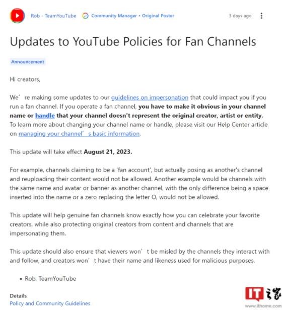 YouTube 近日宣布將更新其打擊仿冒賬戶(hù)的政策,進(jìn)一步根除高仿賬戶(hù)對用戶(hù)體驗的負面影響。相關(guān)政策將于 8 月 21 日起生效。