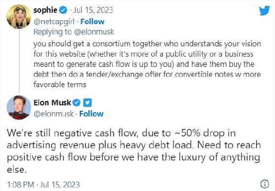 當地時(shí)間上周六,埃隆·馬斯克表示,受廣告收入下降近 50% 和沉重的債務(wù)負擔影響,推特現金流仍然為負,未達到他 3 月份做出的“推特將在 6 月份實(shí)現現金流為正”的預期。