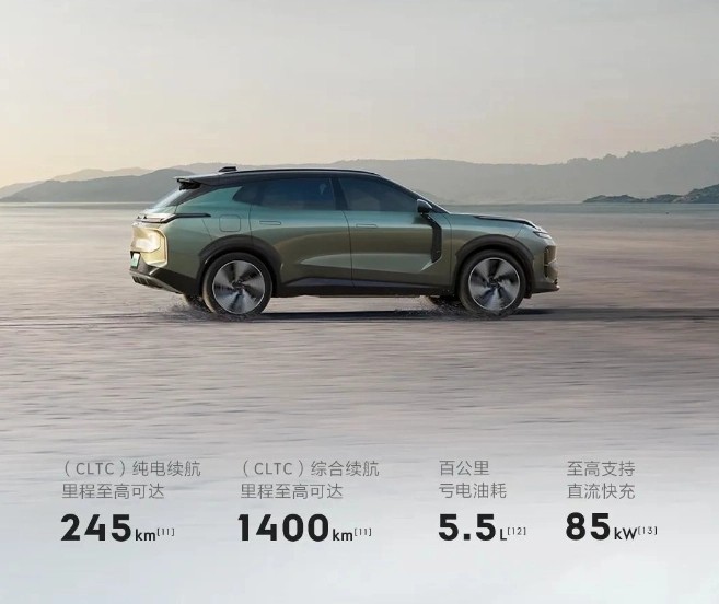 新車(chē)配備 3 種不同容量三元鋰電池,容量分別為 21.2kWh / 39.6kWh / 39.8kWh,CLTC 工況純電續航里程 分別對應 120/220/245km,綜合續航里程 1400km。