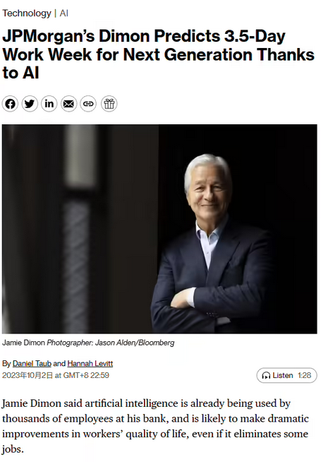 據彭博社昨日晚間報道,摩根大通 CEO Jamie Dimon 在昨日接受彭博 TV 采訪(fǎng)時(shí)談及自己對 AI 的看法。