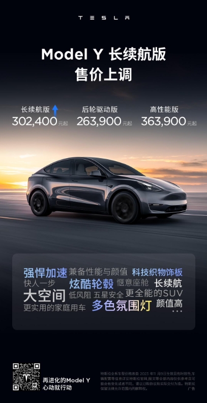 特斯拉中國宣布,Model 3 長(cháng)續航版及 Model Y 長(cháng)續航版漲價(jià)(注:不影響其他版本車(chē)型)。